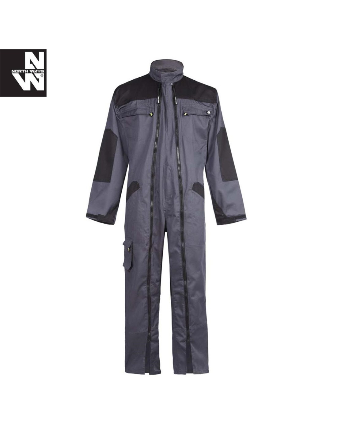 COMBINAISON double zip bicolore - 2 poches poitrine zippées - bas de manches et bas de jambes resserrables par patte - ceinture élastiquée côtés et dos + 4 passants - 2 soufflets daisance dos - 2 poches main + ouvertures passe-mains - 1 poche plaquée dos - 1 grande poche plaquée cuisse gauche - 1 poche téléphone plaquée - 1 poche mètre bicolore...