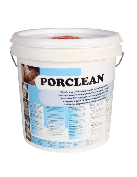 Lingettes Porclean (carton de 2 recharges de 1000 lingettes) Lingettes nettoyantes et désinfectantes. Sutilisent pour le nettoyage des vulves des truies avant linsémination. Sutilisent également pour le nettoyage des trayons des vaches laitières avant la traite. Nirritent pas la peau, contient de lallantoine et une solution de chlorexidine. Format...