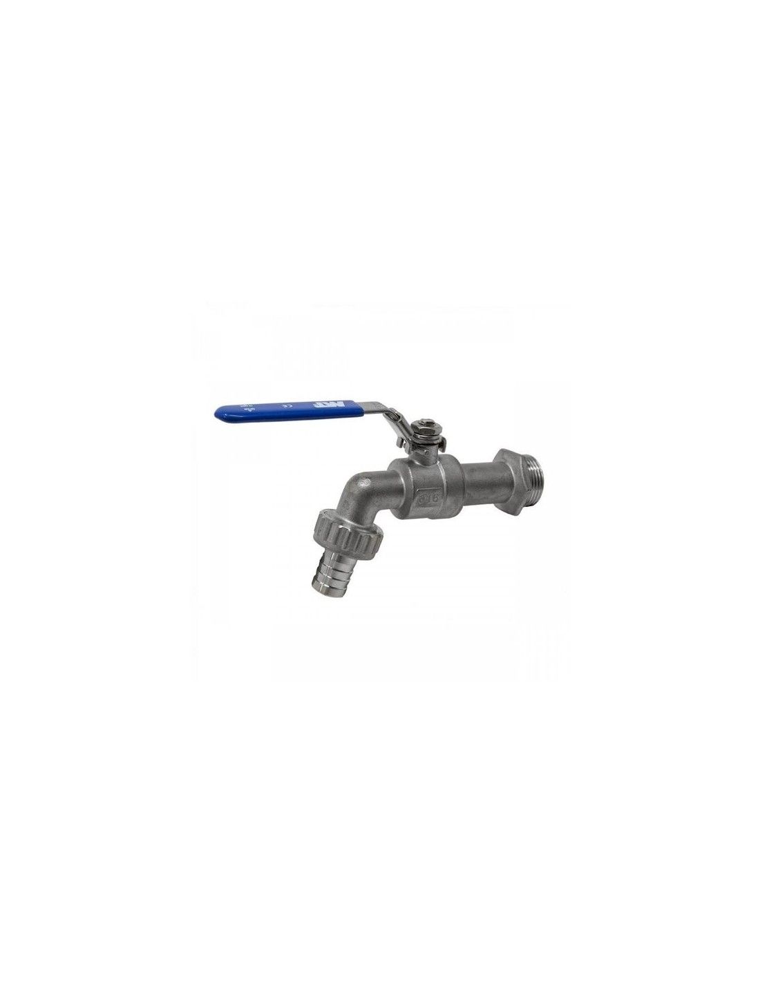 Robinet de jardin PN16 avec raccord de tuyau. Corps, couvercle, sphère et raccord de tuyau en acier inoxydable A316, poignée et mécanisme de verrouillage en acier inoxydable A304 et sièges en PTFE. Résiste à une pression de 16 bars (250 psi) et à des températures de service de -10 à 100 °C. Ce robinet est garanti pour une utilisation avec de l'eau froide et chaude, des huiles, du diesel et des produits chimiques compatibles.