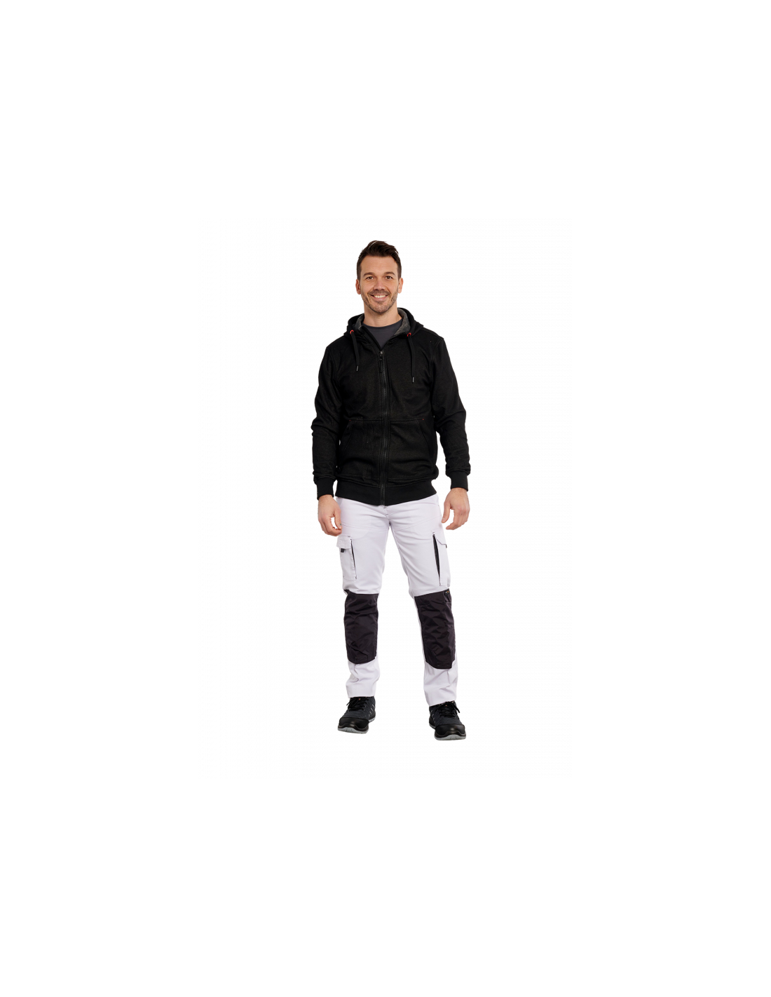 65% polyester, 35% coton2 poches repose-main 2 poches dos 2 poches latérales1 poche smartphone +1 porte badge1 boucle porte -outils1 poche mètre